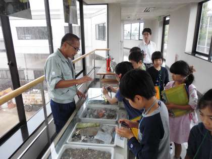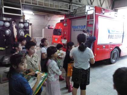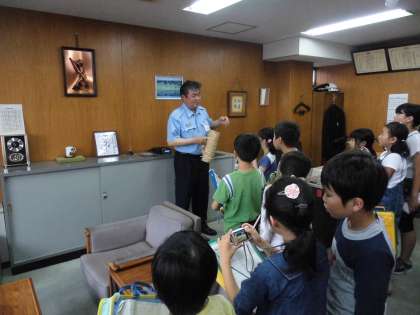 3・4年生が社会の学習で、消防署と晴丘センターへ校外学習に出かけました。消防署では、消防車や服装の種類などについて詳しく説明を受けました。また、消防署長さんの部屋にも案内していただきました。晴丘センターでは、大きな機械による実際の作業の工程などを見学させていただき、大変勉強になりました。