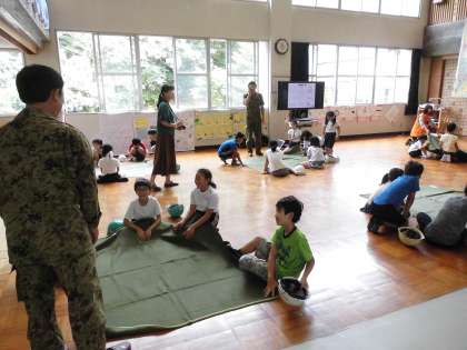 避難訓練 公開日 2018/09/08 更新日 2018/09/08 最近の行事から 今年度2回目の避難訓練を行いました。大地震により校舎北側の山で崖崩れが起きたという想定で行いました。その後、自衛隊の方による防災講話と防災訓練を実施しました。簡易テントの作り方を実習するなど有意義な訓練でした。