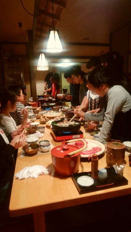 お待ちかね。夕食はすき焼きです。長旅でお腹もぺこぺこです。