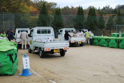 朝早くからPTA主催の廃品回収を行いました。保護者、地域の皆様のご協力で手際よく進めることができました。収益は子どもたちの学習のために使わせていただきます。ありがとうございました。