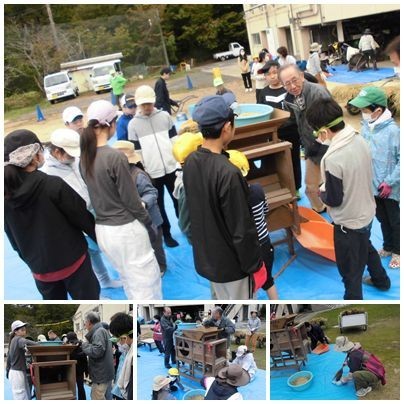 子どもたちは「もう○回目だから、やり方は知っているよ」など言いながらも、年1回のこの作業には興味津々で、風に舞った籾殻なども一生懸命に集めていました。1月の「もちつき大会」をとても楽しみにしているようです。