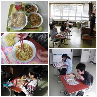 麺類が好きな子が多く、年に数回しか出ない「ラーメン」は、人気メニューの1つです。麺を袋から出し、少しずつ取り分け、スープに絡めながら、上手に食べていました。スープをあふれさせることなく、きれいに食べるためには、少々工夫が必要なようです。