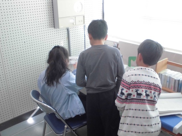 4年生は、社会科の学習とも絡めながら、自分で題材を決め、資料や図鑑などで調べたことをもとにリーフレットを作っていました。資料の説明文を書き写すだけでなく、要約したり、文の組み立てを工夫したりして、わかりやすいリーフレットにしようとがんばっていました。