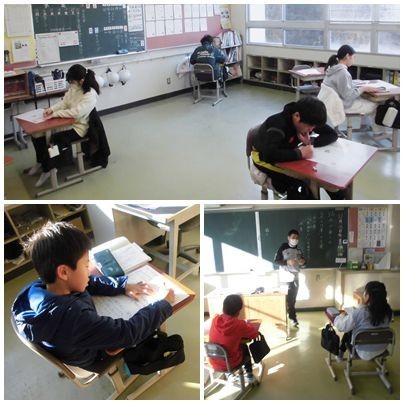 テストの真っ最中でした。それぞれが集中して取り組むことができるように机の向きを変えた、テスト用の隊形です。2学期の学習をしっかり振り返り、3学期につなげましょう。