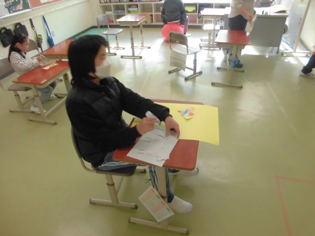 工夫を凝らして、クリスマスや誕生日、お正月のカードを作っていた3・4年教室。