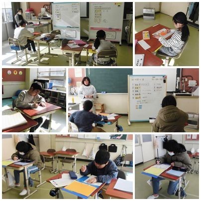 テストの真っ最中でした。それぞれが集中して取り組むことができるように机の向きを変えた、テスト用の隊形です。2学期の学習をしっかり振り返り、3学期につなげましょう。