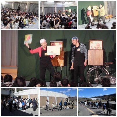 今年度の観劇会は、マーガレット一家の「りささん」と「たつさん」による紙芝居ショーでした。普通の紙芝居ではなく、一緒に体を動かしたり、声を出したり、歌ったり…、みんなを引き込んでのパフォーマンスに大いに盛り上がりました。2つの紙芝居を使っての劇場型?紙芝居もあって、驚いていた子も多かったです。