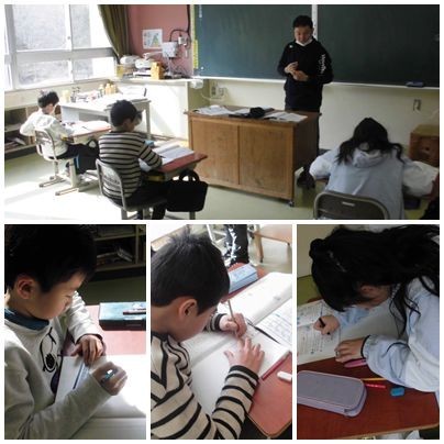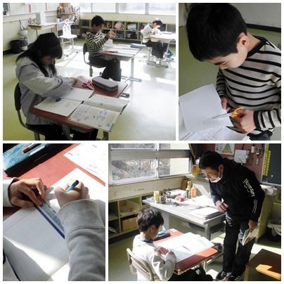 2学年とも、テスト中でした。「コツコツコツコツ」鉛筆の音だけが響く張りつめた雰囲気の中で、集中して取り組んでいました。