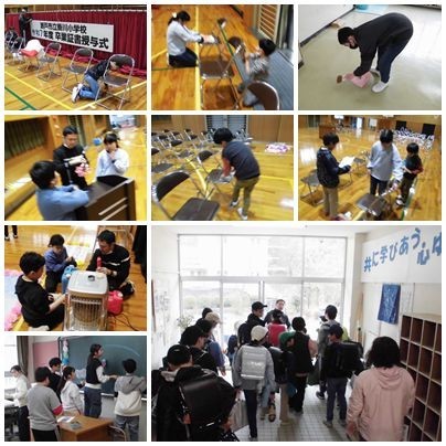 1~5年生が、6年生にキンセンカの花をプレゼントしました。牛乳パックを使ったかわいい入れ物は、6年生の卒業を祝う気持ちを込めて手分けして作りました。 6年生からは、家庭科の授業で作った布製のキーボードカバーやカーテンなどをプレゼントしてもらいました。早速、使い始めた教室もあるようです。