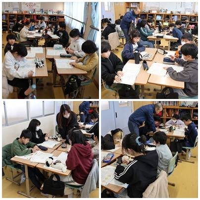 学校展示会が無事に開催できましたこと、来てくださった皆様に心より感謝いたします。日頃の学習の成果である、一人一人が工夫をこらした表現はいかがだったでしょうか。作品の前で足を止め、じっくりと見入ったり感想を伝えたりする姿が多く見られ、子どもたち自身も大きな達成感を味わっていました。来場された方からは、「一人一人の工夫が伝わってきた」「学年ごとの成長がよく分かった」といった声が聞かれ、温かい評価をいただきました。