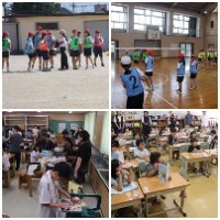 4年生、防災についての学習のまとめとして、防災教室を開催しました。長根連区の自治会の方、愛知県防災リーダー会の方、市役所防災安全課の方に来ていただき、お話を聞いたり、実際に防災に関するものを見せていただいたりしました。また、アルファ米を試食する準備のために、授業支援サポーターとして保護者の方にも来ていただき助けていただけました。