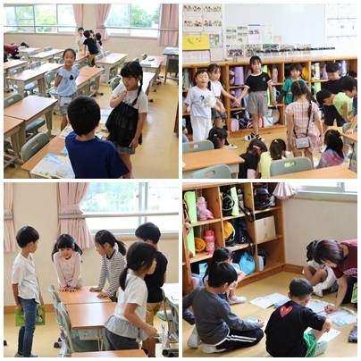 毎年、この時期になると1年生の教室から元気のよい声が響きます。「天までとどけ 1 2 3」、国語の教材「くじらぐも」を動作化しながら音読する声です。一緒に「くじらぐも」に乗った気分になるので、「くじらぐも」のことが大好きです。