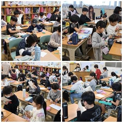 こまをつくろう 3-2算数 公開日 2025/10/24 更新日 2025/10/24 学校・学年ニュース 工作用紙を切ってこまを作っています。図工ではなく算数です。こまの回る様子から、これから学ぶ円についての課題づくりになっていくようです。