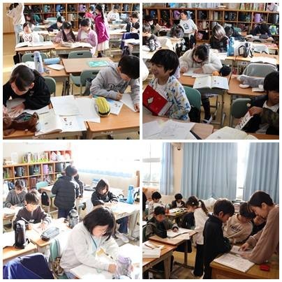 長根小学校の周りには、いろいろなお店や建物があります。その中から一つ紹介したいものを選んで伝える文章を書きます。「はじめ」「中」「おわり」の形で理由を明確にして書いていました。