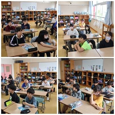 5年生の書写、最初の授業です。場面にあった文字の書き方や姿勢などを確認しました。