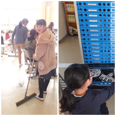 進んで掃除をしている人もいます。それぞれ考えて行動していますね。