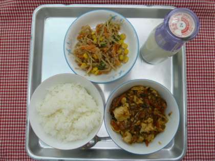 ごはん・マーボー豆腐・ごぼうサラダ・牛乳でした。
