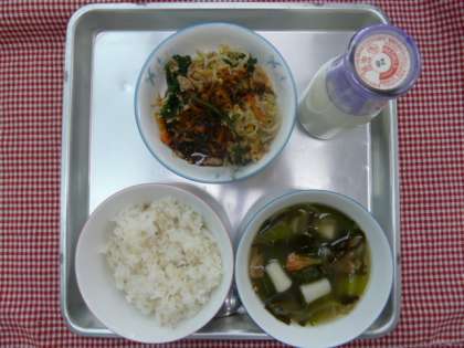 麦ごはん・トックスープ・ビビンバ・牛乳でした。