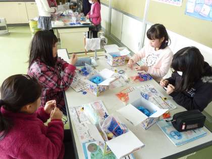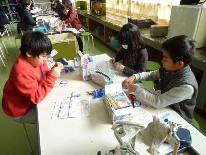 次の実験に備えて、コイルを巻いた5年生。