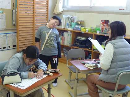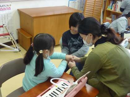 音楽集会に向けての練習をしたり、手遊び歌をしたりするふれあい学級。
