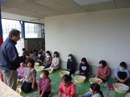 教室のぞうきんを洗っている子は、水が真っ黒に!