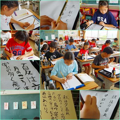 枕草子の有名な冒頭部分を小筆で書いています。なかなか味のある作品が出来上がりました。