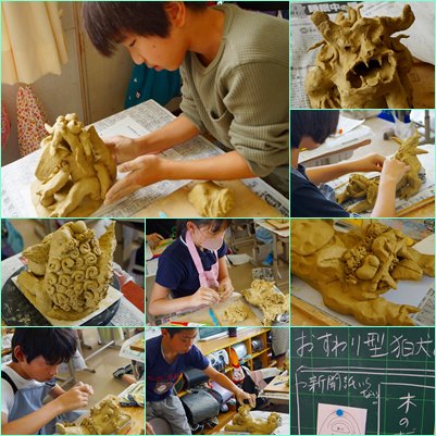 6年生の粘土作品は「狛犬」をテーマにしています。いろいろな表情の狛犬が次々と出来上がっていきます。