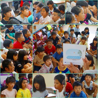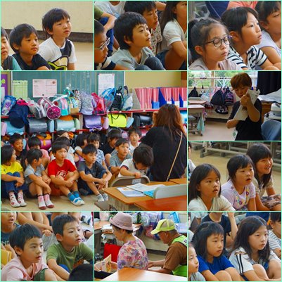 せっかくプールの用意を持ってきたのに、雨が降ってしまいました。でも、「葉っぱの会」の皆さんのおかげで、お話の世界に没頭することができました。残念な気持ちも吹き飛ばすことができました。