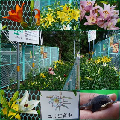 いつも学校の花壇や2年生のサツマイモなどでお世話になっている佐藤さんが植えてくださったユリが花をつけています。一度は踏まれてしまい、だめになりそうでしたが、植えかけていただき、人が入らないように工夫をしていただいて、立派に咲きました。正門の横に咲いています。ぜひご覧になってください。