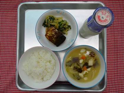 ごはん・呉汁・さばの照り焼き・アーモンドあえ・牛乳でした。