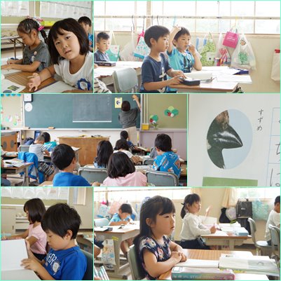 1年国語。 すずめのくちばしは、「ふとくて、?」。 様子を表す言葉を重ねて表現する練習をします。