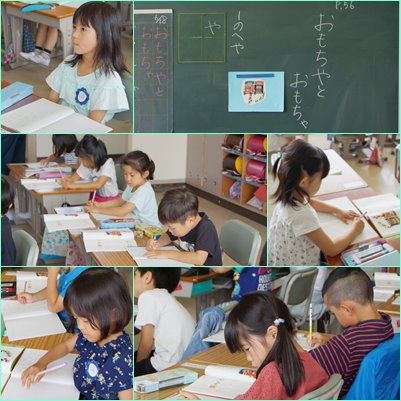 「おもちや」と「おもちゃ」の違いがわかるように平仮名の練習をします。