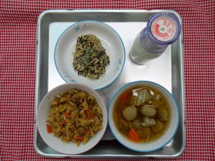 とりめし・つみれ汁・ごしきあえ・牛乳でした。