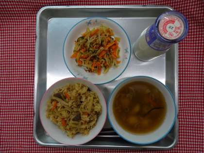 瀬戸のゴモ・お月見汁・まんぷくサラダ・牛乳でした。