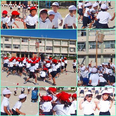 1・2年玉入れの練習。 練習ですが、本気です。