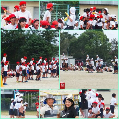 5・6年生による騎馬戦の練習です。大将がかぶる立派な兜も出来上がりました。