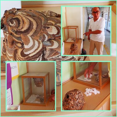 地域の方に、スズメバチの巣の樟脳の交換に来ていただきました。こうしてきちんとしたメンテナンスをしていただいているおかげで、子どもたちはいつも立派な巣の様子を観察することができます。