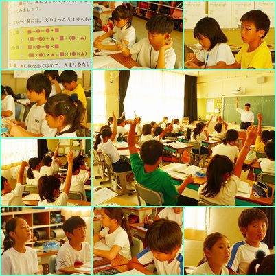 金曜1限は、3クラスとも算数の勉強でした。担任が、〇△□を使ったよくわからない式を板書します。交換法則や結合法則の基本ルールです。