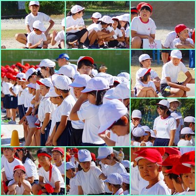 今日の1限目は運動会の予行を行いました。まずは、6年生のリードでトラックのまわりに集まります。