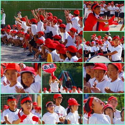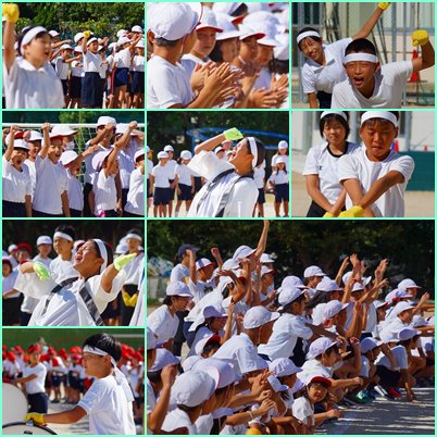 続いて応援の練習です。声が出てきました。応援団長さん、喉つぶさないようにね。