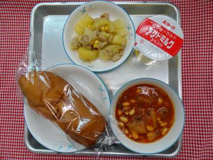 あいちの米粉パン・チキンビーンズ・ジャーマンポテト・発酵乳でした。