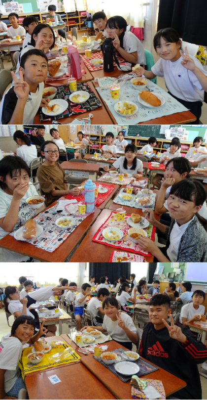 昨日は米粉を使ったフライが給食に出ましたが、今日は米粉を混ぜたパンが出ました。