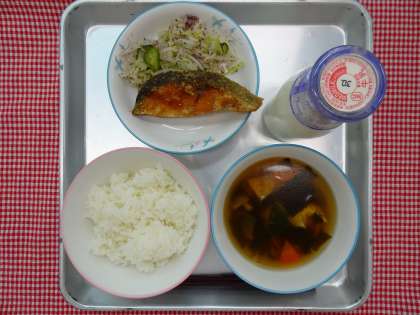 ごはん・やさしい笑顔スープ・さけのレモンじょうゆかけ・ゆかりあえ・牛乳でした。