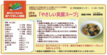 やさしい笑顔スープは応募献立です。