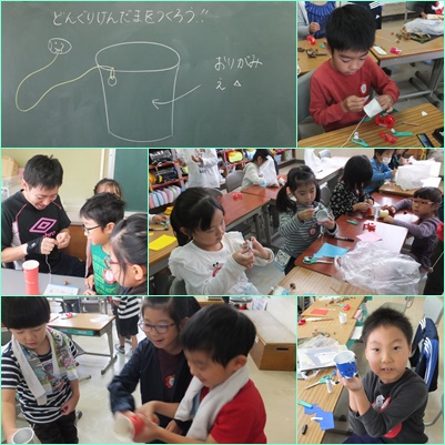 生活科で秋をみつけに行ったときに拾ってきたどんぐりで「けん玉」を作りました。