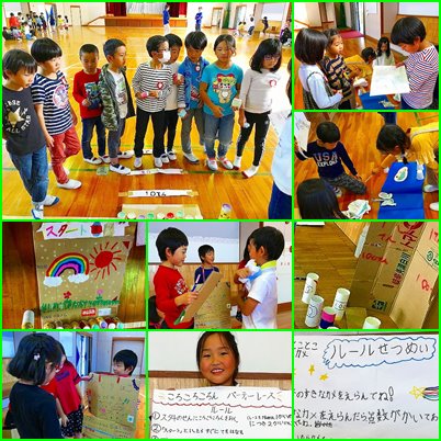 2年生が作ったオリジナルゲームで、1年生に遊んでもらうという企画です。2年生はちょっぴり緊張して、1年生に楽しんでもらえるように頑張りました。