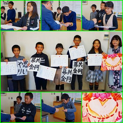 赤い羽根共同募金コンクールのポスターの部と習字の部でそれぞれ1名、4名が優秀賞を獲得しました。