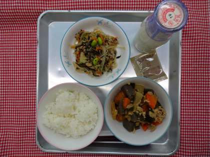 ごはん・関東煮・ひじきと春雨のあえもの・牛乳・ココア牛乳のもとでした。