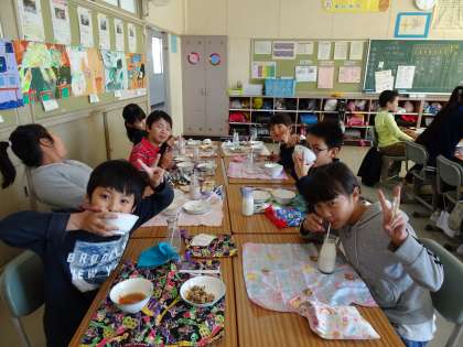 ココア牛乳のもとが出ました。今日は牛乳を残さず飲んでくれる子が多くいました。ストローを使って上手に混ぜて飲んでいましたよ。