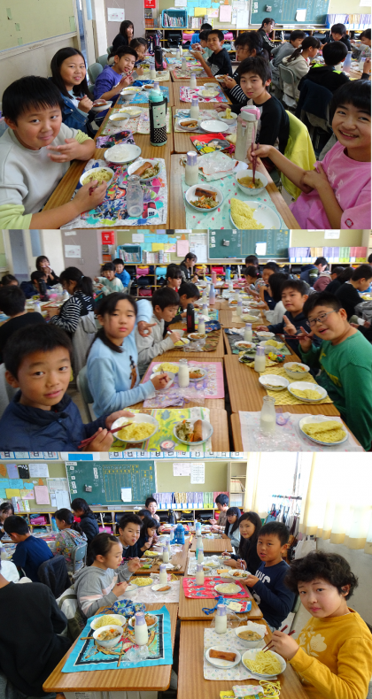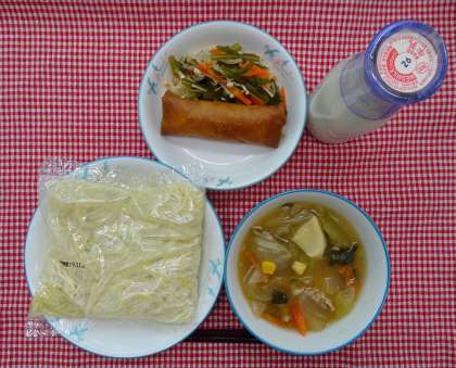 ラーメン・中華あんかけ・愛知しそ入り鶏春巻き・くきわかめの中華風あえもの・牛乳でした。